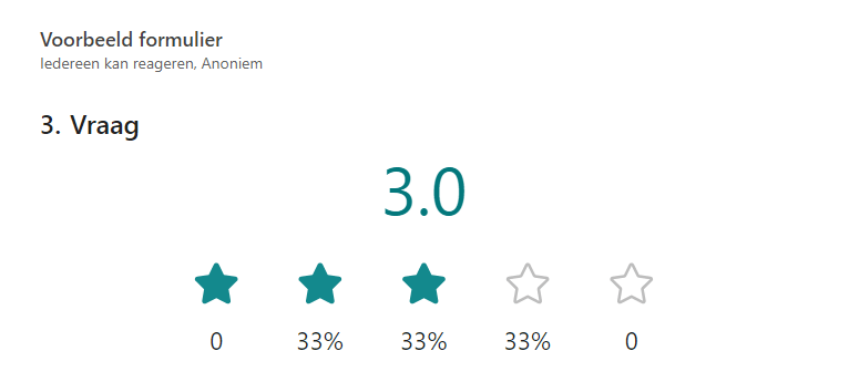 Zodra het formulier wordt ingevuld, worden de resultaten direct weergegeven. Je kunt ook door de verschillende vragen heen bladeren om de resultaten vraag voor vraag te bespreken en behandelen. Bij elk type vraag (bijvoorbeeld keuzevragen, beoordelingsvragen, open vragen en classificatievragen) worden de resultaten anders weergegeven, op een manier die het beste aansluit bij het type vraag.